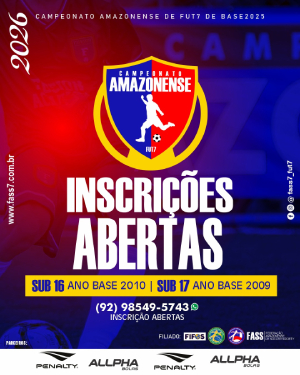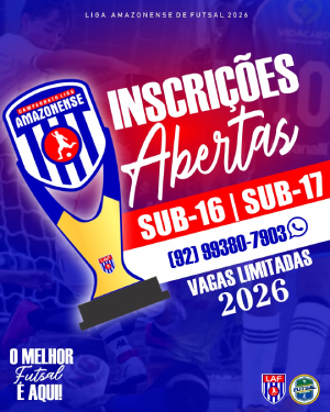 13/11 - Associação Grêmio da Amazônia é campeão da Copa LAF de Futsal sub 17 | 2025      |      13/11 - Japão FC é campeão da 7º edição da Copa Amazonense de Futsal sub 15 | 2025      |      01/07 - Liga abrir inscrições para a Copa LAF de Futsal sub 17 maiores informações pelo WhatsApp (92) 99380-7903      |      11/06 - Escolinha JP Soccer é campeão da Liga Amazonense de Futsal - Sub 17 | 2025      |      11/06 - Mídia Futebol Club é campeão da Liga Amazonense de Futsal - Sub 15 | 2025      |      12/05 - Copa Norte de Futsal sub 17 - 2025      |      12/05 - Inscrições Abertas para o Campeonato Amazonense Fut7 sub 13      |      05/05 - Copa Norte de Futsal | sub 17 inscrição abertas 2025      |      19/04 - Vem aí mais uma edição da Copa Norte de Futsal de Base sub 17 maiores informações pelo canal WhatsApp (92) 99380-7903      |      11/03 - Copa da Criança de Futsal 2025. Inscrições Abertas pelo whatsapp (92) 98599-9976      |      06/01 - Inscrições abertas 2025! 7º Copa Amazonense de Futsal sub 15, sub 16, sub 17, sub 18.      |      15/10 - Padre Martin é campeão da 6ºCopa Amazonense de Futsal Sub 17 - 2024      |      15/10 - São José FC é campeão da 6ºCopa Amazonense de Futsal Sub15 - 2024      |      01/10 - Pica Pau Sport Club é campeão da Liga Amazonense de Futsal SUB 11 - 2024      |      23/09 - Amazonas FC é campeão do Sub-11 do Campeonato Amazonense Fut7 2024      |      23/09 - Unidos FC é campeão do Sub-13 da 3ºCopa da Liga Fut7 2024      |      03/09 - Inscrições Abertas 2025! Liga Amazonense de Futsal de Base      |      03/09 - Inscrições Abertas 2025! Campeonato Amazonense de Futebol 7 de Base      |      21/08 - Liga Amazonense de Futsal abre inscrições para a categoria sub 15 e sub 17 temporada 2025 maiores informações pelo whatsapp (92) 99192-0998 | (92) 99380-7903      |      21/08 - LIGA abre inscrições para o campeonato amazonense de futebol 7 sub 13 e sub 15 temporada 2025 maiores informações pelo whatsapp (92) 98599-9976      |      29/07 - Central FC é Bicampeão da Liga Amazonense de Futsal sub13 - 2024      |      29/07 - Snakes FC é Bicampeão da Liga Amazonense de Futsal sub19 - 2024      |      26/06 - Vem aí... a 6º Copa Amazonense de Futsal categoria sub15, sub17 e sub19 maiores informações pelo canal whatsapp (92) 99380-7903      |      15/06 - Amazonas FC é bi campeão amazonense de futebol 7 sub 9 - 2024      |      14/05 - S.C Curumim é o campeão do Campeonato Liga Amazonense de Futsal Sub 15 - 2024      |      27/04 - Inscrições Abertas 2024 6°Copa Amazonense de Futsal Sub 15 maiores informações pelo canal whatsapp (92) 99380-7903      |      09/02 - Recanto é campeão da 5°Copa Amazonense de Futsal sub 15 / 2023-2024      |      26/12 - Verona CDB é campeão da Copa da Liga 7 de base sub 09 - 2023      |      03/11 - Fusion Soccer Academy é campeão amazonense fut7 de base sub 17 - 2023      |      03/11 - Vasco Academy é campeão da copa da Liga 7 de base sub 11 - 2023      |      28/09 - Central FC é o campeão da Liga Amazonense de Futsal 2023 - Sub 13      |      18/09 - Verona CDB é campeão amazonense Fut 7 de Base sub 15 - 2023      |      13/09 - Inscrições Abertas 2024 Campeonato Amazonense de Futebol 7 e Liga Amazonense de Futsal categoria de base      |      24/08 - É campeão Amazonas FC da Liga Amazonense de Futsal 2023 | SUB 11      |      05/06 - Dia 18 de junho a bola rola no campeonato Liga Amazonense de Futsal sub 11 e sub 13      |      01/06 - Dia 03 de junho inicia 2ºcopa da Liga 7 sub 13 na arena Laranjeira - Parque Dez      |      01/06 - São Raimundo é campeão Amazonense Fut 7 sub 11      |      01/06 - Dia 03 de junho inicia campeonato amazonense fut7 sub 9 e sub 15 na arena Laranjeira - Parque Dez      |      01/06 - São Raimundo é campeão Amazonense Fut 7 sub 13      |      22/05 - Final SUB 11 - Campeonato Amazonense Fut7 de Base: São Raimundo x Escola Cavalo de Aço      |      22/05 - Final SUB 13 - Campeonato Amazonense Fut7 de Base: São Raimundo x Santos Manaus      |      24/11 - Está aberto as inscrições para a categoria sub 15 e sub 17 temporada 2023 pelo whatsapp (92) 991920998      |      12/09 - Internacional Academy Soccer é campeão Amazonense de futebol 7 - sub 11 / 2022      |      19/08 - Verona CDB é campeão da Liga Amazonense de Futsal sub 13/2022      |      19/08 - PSC Blue é campeão da Liga Amazonense de Futsal sub 15/2022      |      19/08 - Abrantes Fut é campeão da Liga Amazonense de Futsal sub 17/2022      |      07/12 - Sábado dia 11/12/21 A grande final do Campeonato Amazonense de Futebol 7 São Raimundo x Verona CDB - Sub 17 | Afab x Fast Club - Sub 15 Local Arena Laranjeiras EC      |      15/11 - São Carlense/Jeito Moleque é Campeão Amazonense de Futebol 7 sub 13 / 2021      |      04/11 - Internacional Soccer Academy Campeão Brasileiro de Base de Futebol 7 Sub 11/2021      |      04/11 - Instituto São José vice Campeão Brasileiro de Clubes de Ligas de Futsal Sub 13 / 2021      |      07/09 - Jeito Moleque é Campeão Amazonense de Futebol 7 de Basse Sub 9 | 2021      |      21/08 - Quatro Jogos Abrem o Campeonato Amazonense de Futebol 7 de Base Sub 13 Dia 28 de agosto      |      04/08 - Campeonato Amazonense de Futebol 7 sub 9 começa dia 7 de agosto      |      03/08 - Vingadores é campeão amazonense de fut7 sub 11 / 2021      |      13/07 